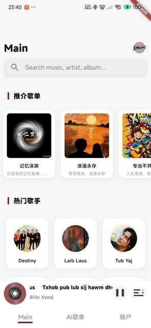 「小音乐」是一款由 Flutter 开发的 Android 音乐应用,内容全部为苗族歌曲。这里没有杂糅,也没有“顺带”,从一开始,它的定位就很明确: 苗族音乐,本就值得被认真对待。