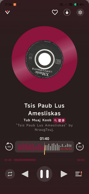 包含最近播放、我的收藏、我的下载以及更多设置,为长期听歌、系统整理苗族音乐的人,提供了真正“好用”的功能支持。底部常驻的播放栏,显示封面图片、歌名、歌手以及播放状态,一切都很克制,却很到位。